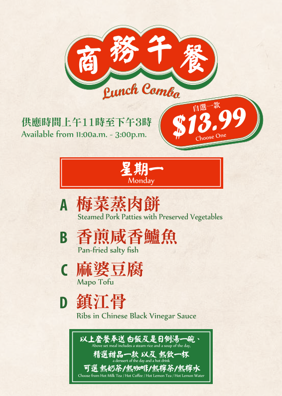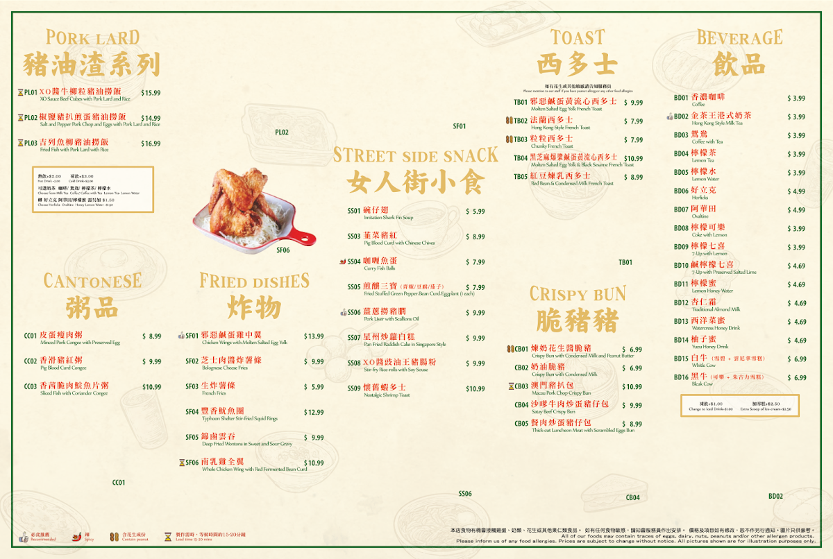 Visitors can use the menu for a variety of dining occasions, from a quick breakfast or snack to a more substantial lunch or dinner. The menu supports quick ordering, including QR code options, and is structured to accommodate both solo diners and small groups seeking traditional Cantonese cafe fare.